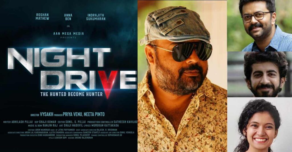ആകാംഷയുടെ മുൾമുനയിൽ നിർത്താൻ വൈശാഖ് സംവിധാനം ചെയ്യുന്ന നൈറ്റ് ഡ്രൈവ് വരുന്നു. സസ്പെൻസ് ത്രില്ലറായി എത്തുന്ന ചിത്രത്തിൽ അന്ന ബെൻ, റോഷൻ മാത്യു, ഇന്ദ്രജിത്ത് എന്നിവരാണ് പ്രധാന കഥാപാത്രങ്ങളെ അവതരിപ്പിക്കുന്നത്. രാത്രി യാത്രയ്ക്കിടെ അന്നയുടേയും റോഷന്റേയും കഥാപാത്രങ്ങൾ ദുരൂഹതയുള്ള ഒരു സംഭവത്തില് കുടുങ്ങിപ്പോകുന്നതാണ് കഥയുടെ ഉള്ളടക്കം. പൊലീസുകാരന്റെ വേഷത്തിലാണ് ഇന്ദ്രജിത്ത് എത്തുക.